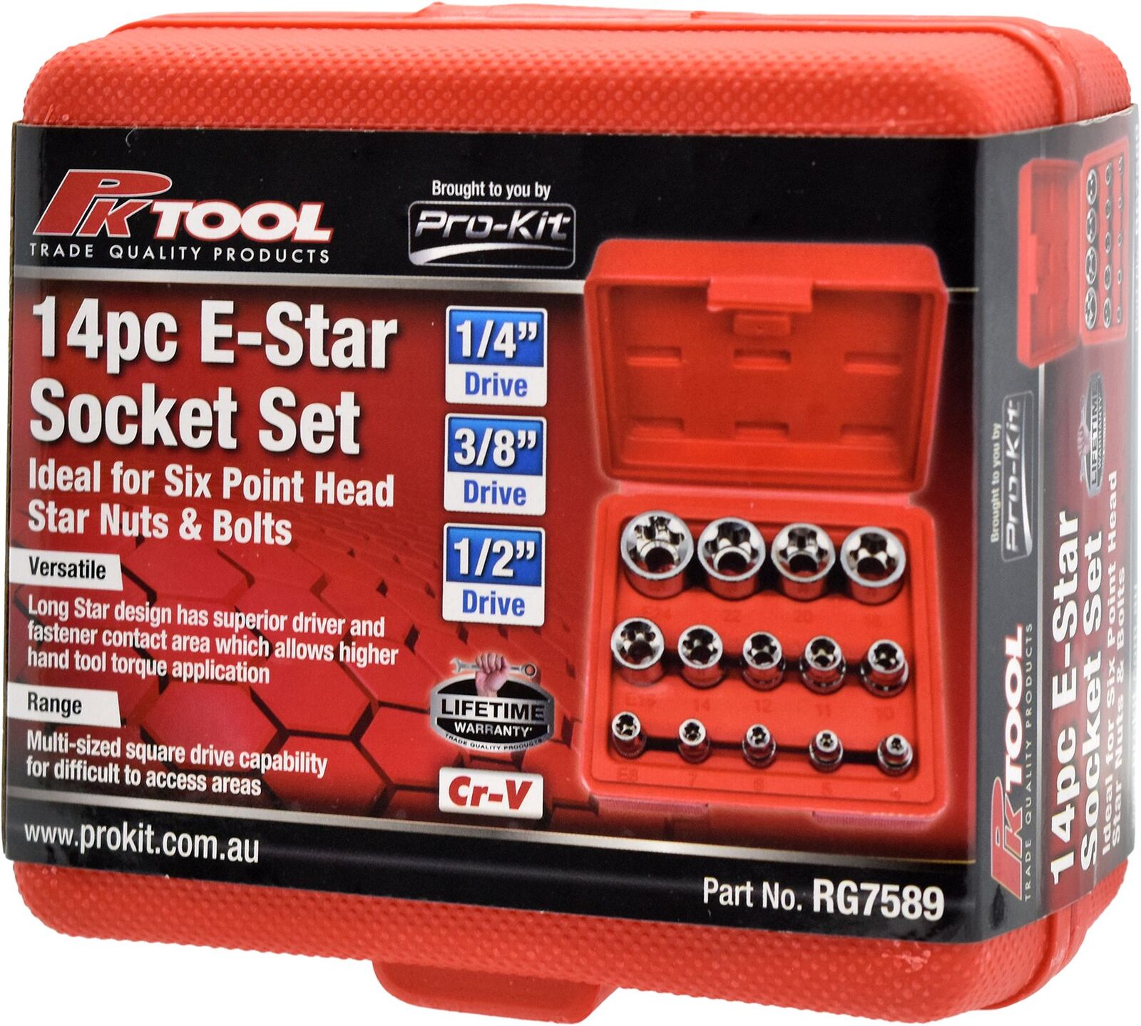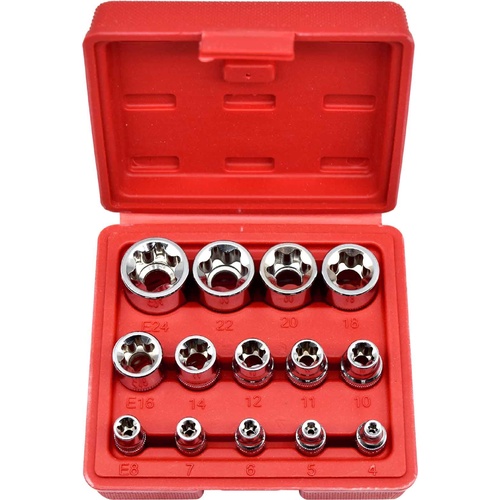 14 Piece Torx Security Socket Set Sizes 4 5 6 7 8 10 11 12 14 16 18 20 22 24mm