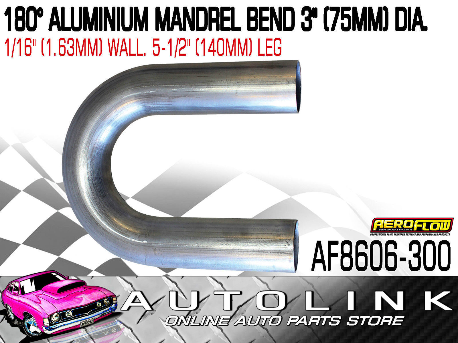 Aeroflow 180° Aluminiumn Mandrel Bend 3" 75mm dia-1.63mm Thick 140mm Leg