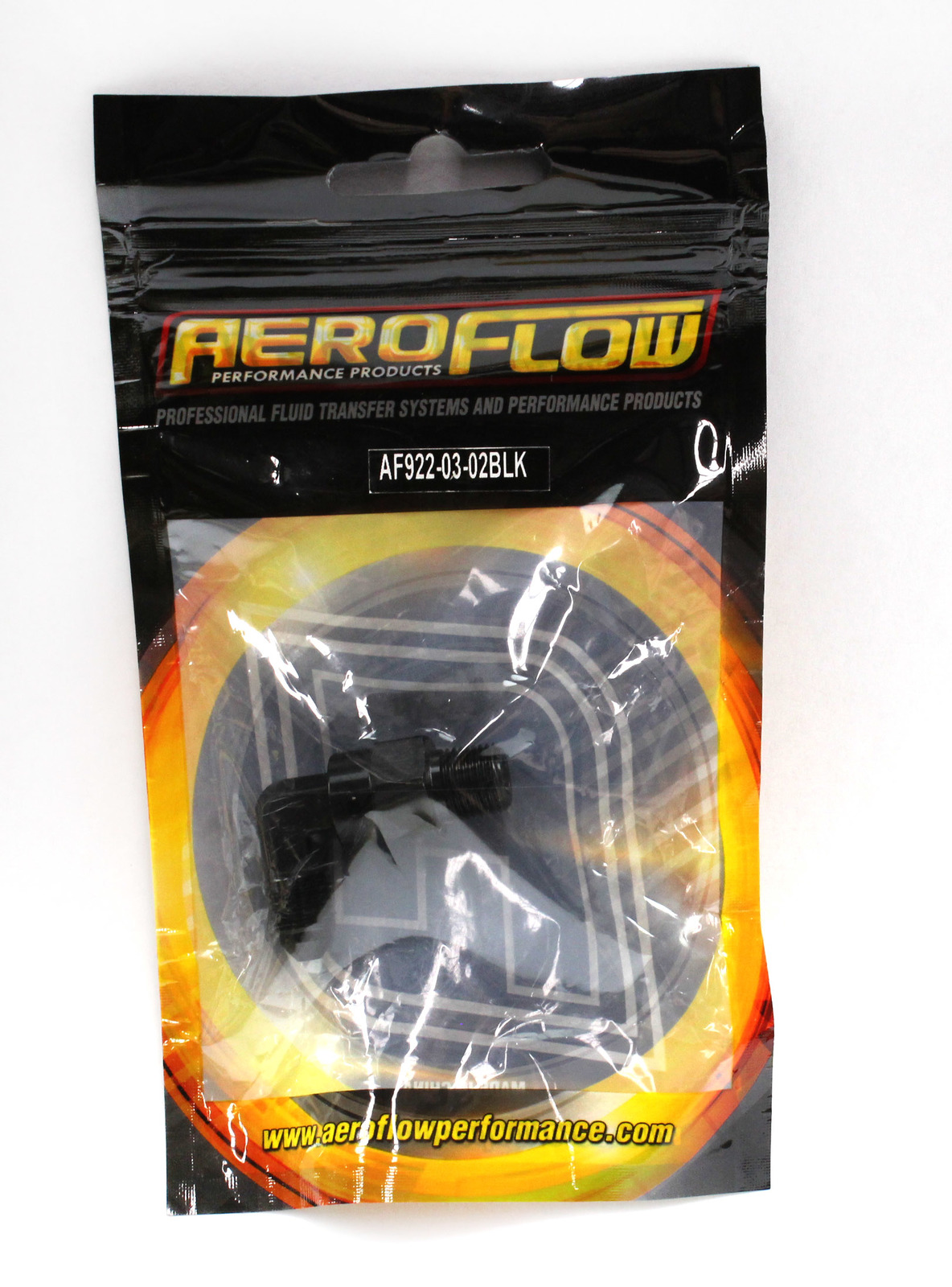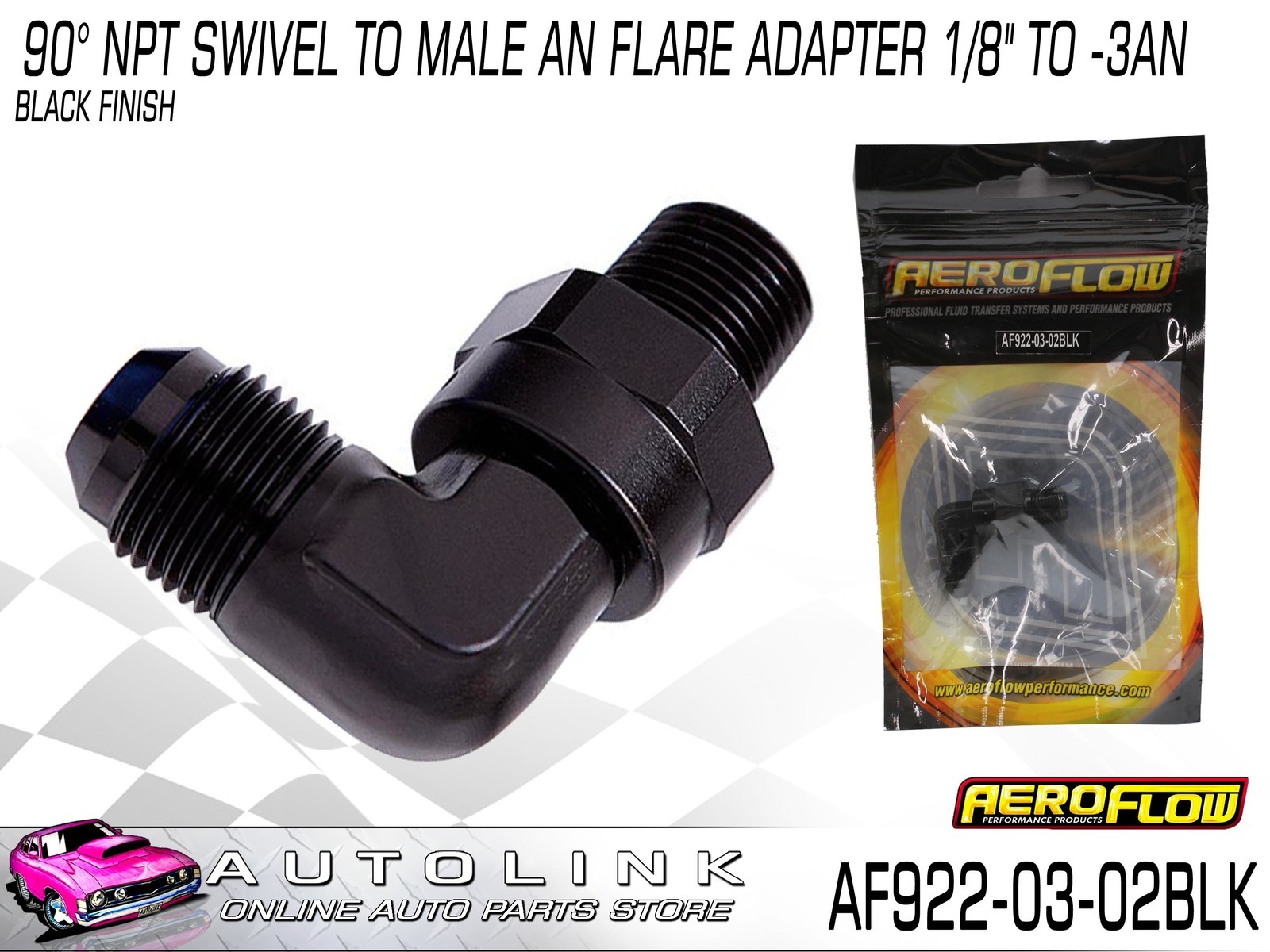 AEROFLOW 90° NPT SWIVEL TO MALE AN FLARE ADAPTER 1/8" TO -3AN AF922-03-02BLK