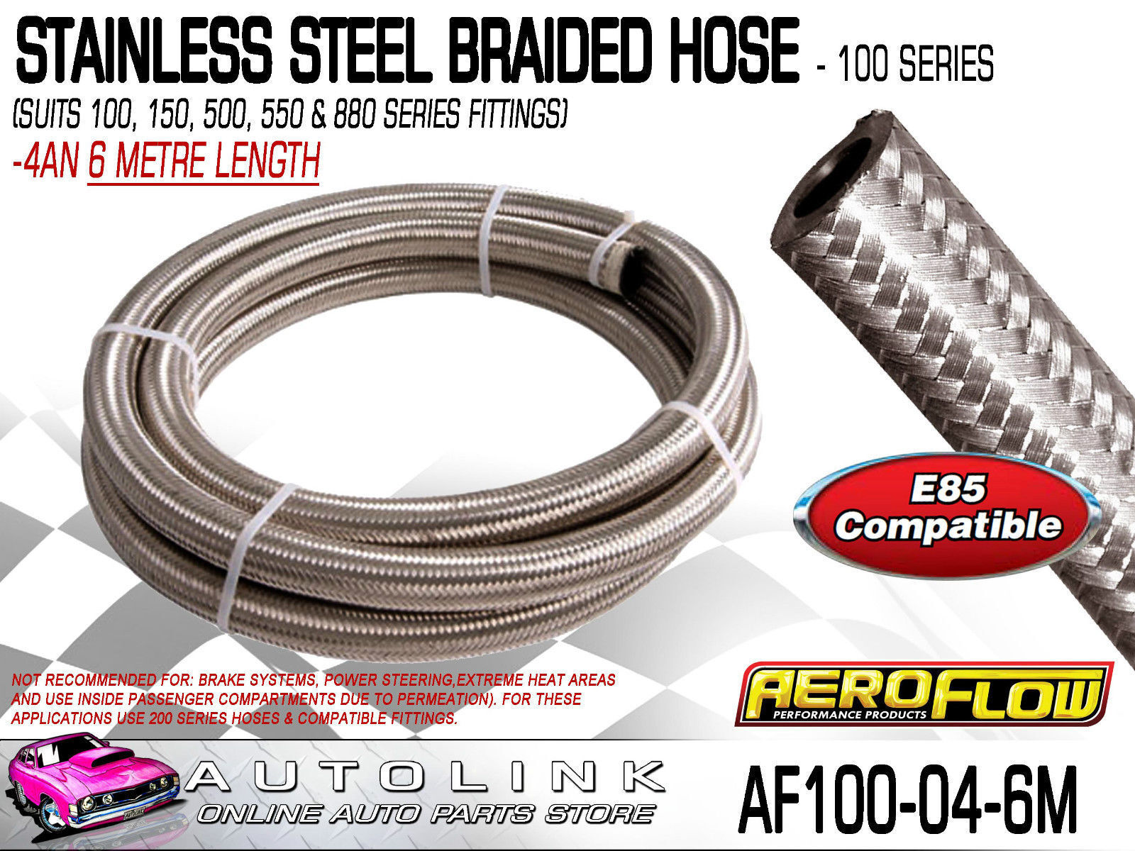 AEROFLOW STAINLESS STEEL BRAIDED HOSE 100 SERIES -4AN 6 METRE LENGTH