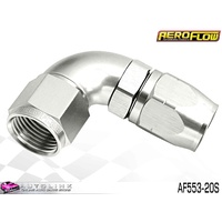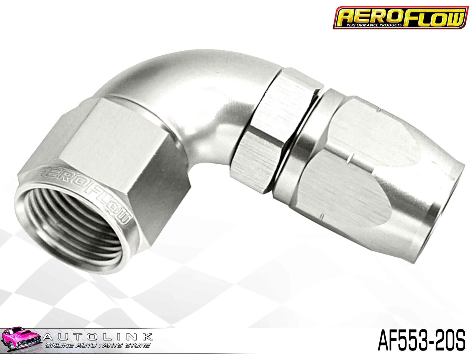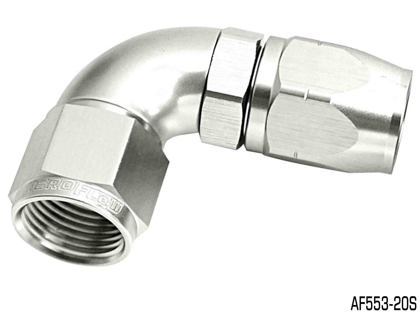 AEROFLOW SILVER ONE PIECE CUTTER FULL FLOW SWIVEL 90° HOSE END -20AN AF553-20S