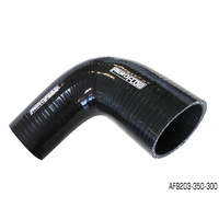 AEROFLOW BLACK 90° ELBOW SILICONE HOSE REDUCER 3-1/2" TO 3" AF9203-350-300