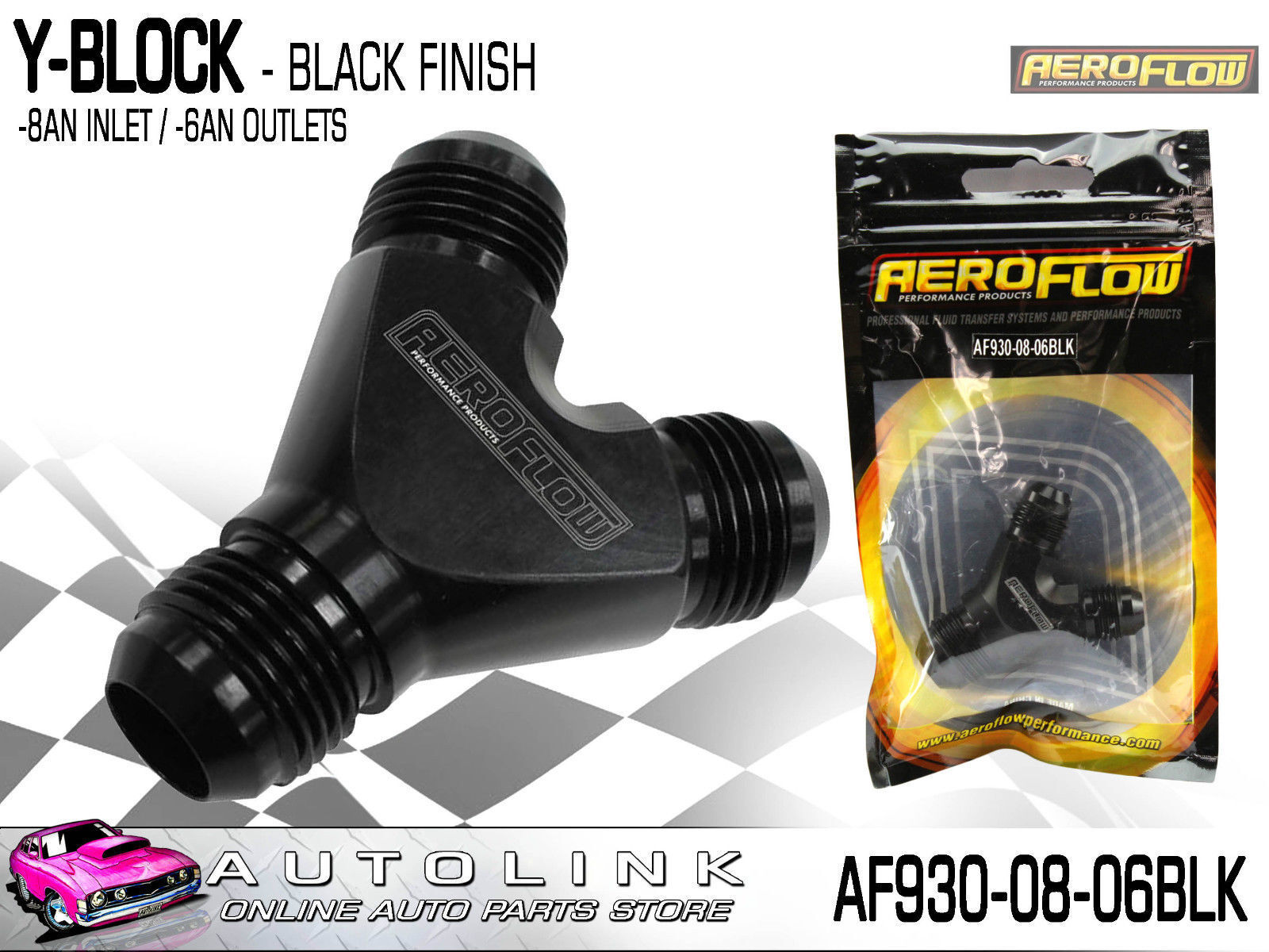 AEROFLOW AF930-08-06BLK Y-BLOCK -8AN INLET -6AN DOUBLE OUTLETS BLACK FINISH
