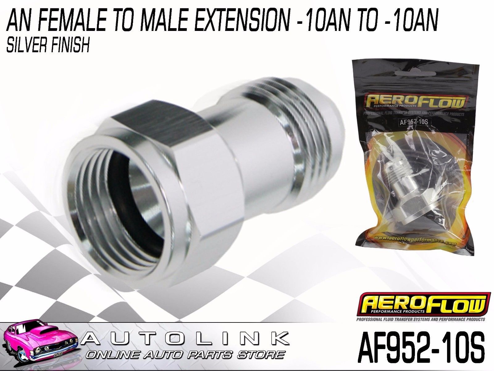AEROFLOW AN FEMALE TO MALE EXTENSION -10AN TO -10AN SILVER FINISH AF952-10S