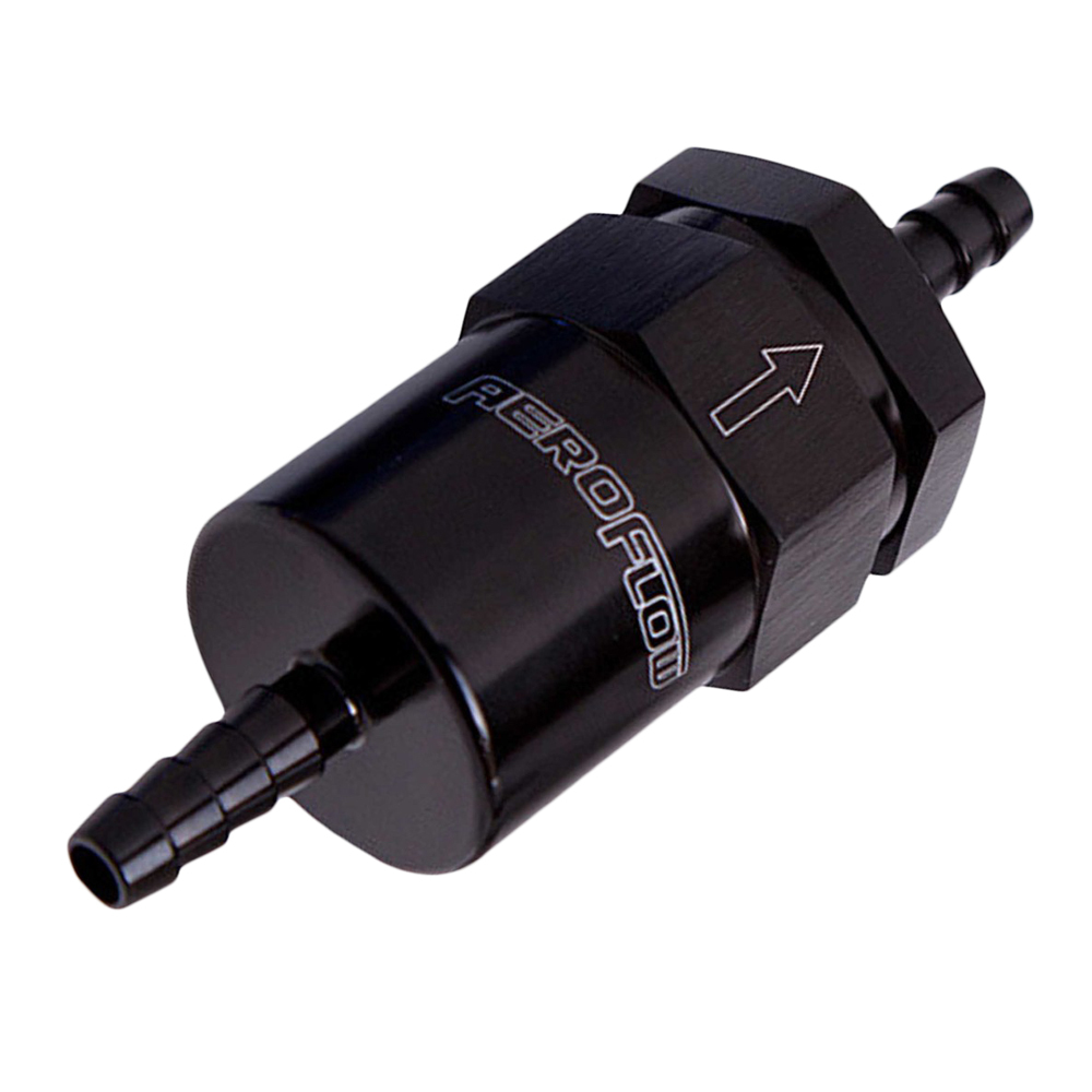 AEROFLOW BILLET FUEL FILTER 30 MICRON 3/8" HOSE BARB BLACK 2" LONG AF610-06BLK