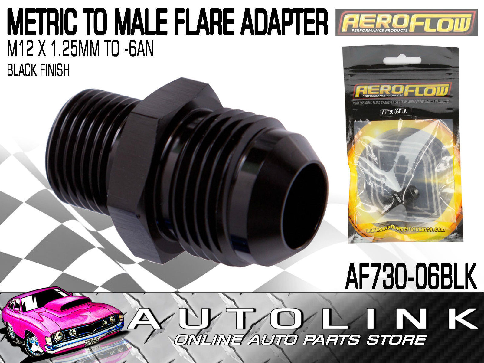 AEROFLOW FLARE ADAPTER METRIC TO MALE M12 X 1.25MM TO -6AN ( AF730-06BLK )