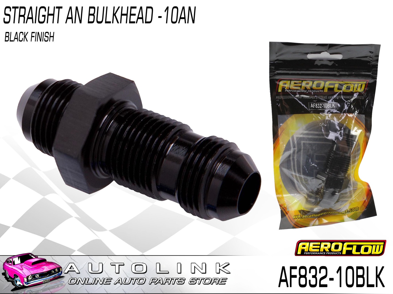 AEROFLOW STRAIGHT AN BULKHEAD -10AN BLACK FINISH AF832-10BLK