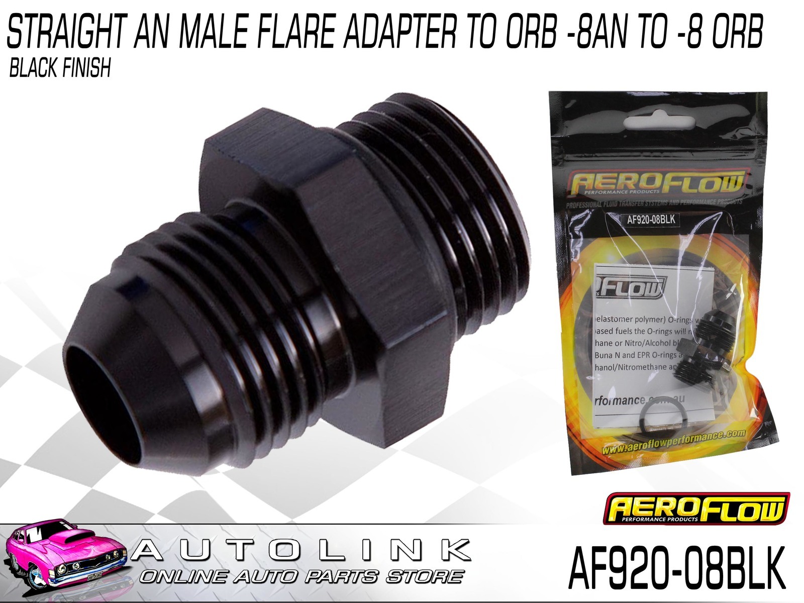 AEROFLOW STRAIGHT AN MALE FLARE ADAPTER TO ORB -8AN TO -8 ORB BLACK AF920-08BLK