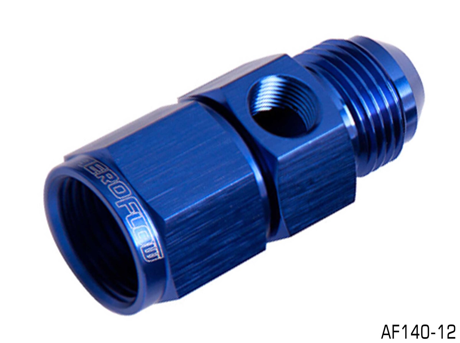 AEROFLOW STRAIGHT FEMALE TO MALE WITH 1/8" PORT -12AN BLUE FINISH AF140-12S