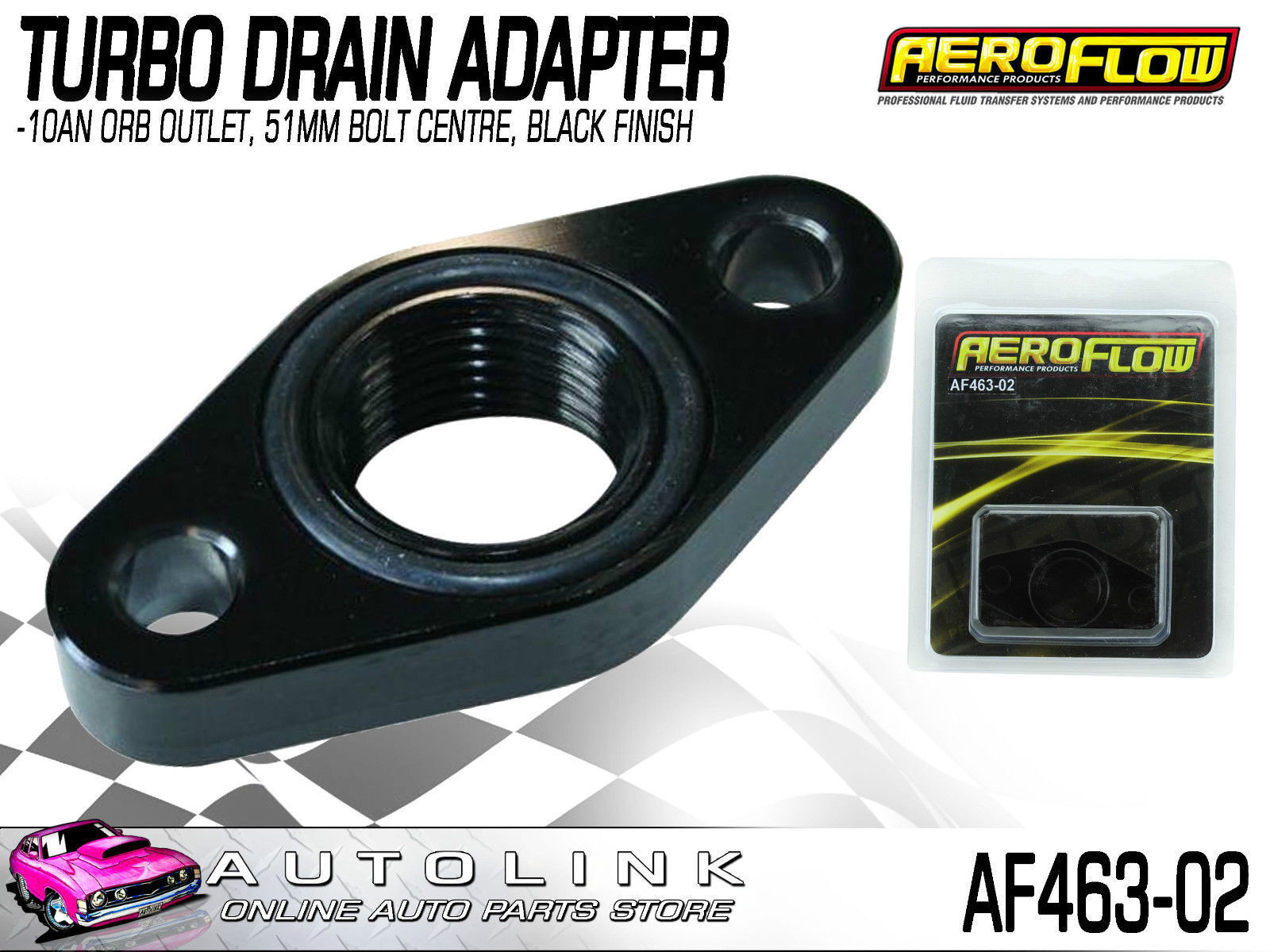AEROFLOW AF463-02 TURBO DRAIN ADAPTER -10AN ORB OUTLET 51mm BLACK FINISH