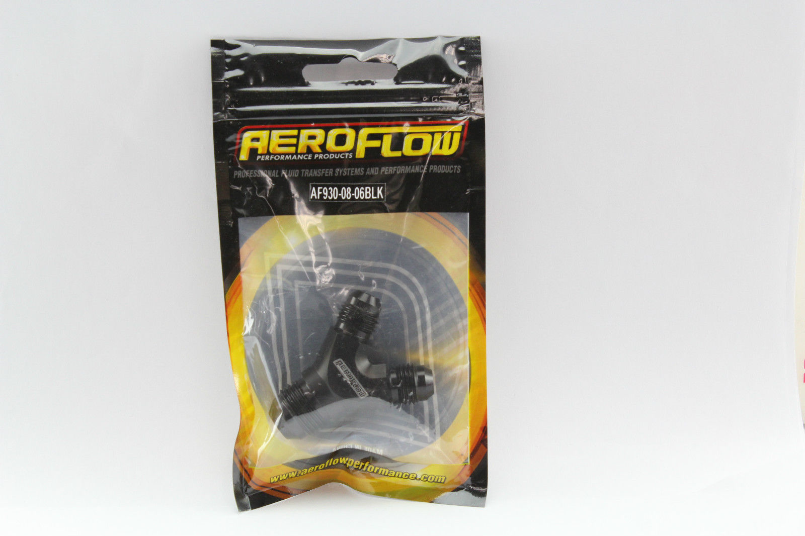 AEROFLOW Y-BLOCK -8AN SINGLE INLET, -6AN DOUBLE OUTLETS BLACK FINISH