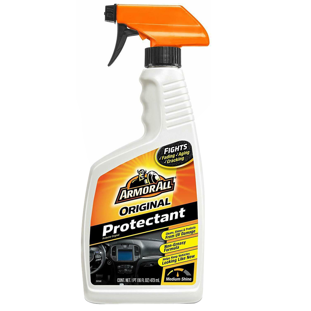 The easy way to clean, protect & shine rubber, vinyl, and plastic surfaces. Armor all original protectant contains a unique UV protection system to help block damaging UV rays and slow the vinyl aging process. Armor All original protectant restores shine and enhances colour making it ideals for use on dashboards, bumpers, window trims, and door panels.
