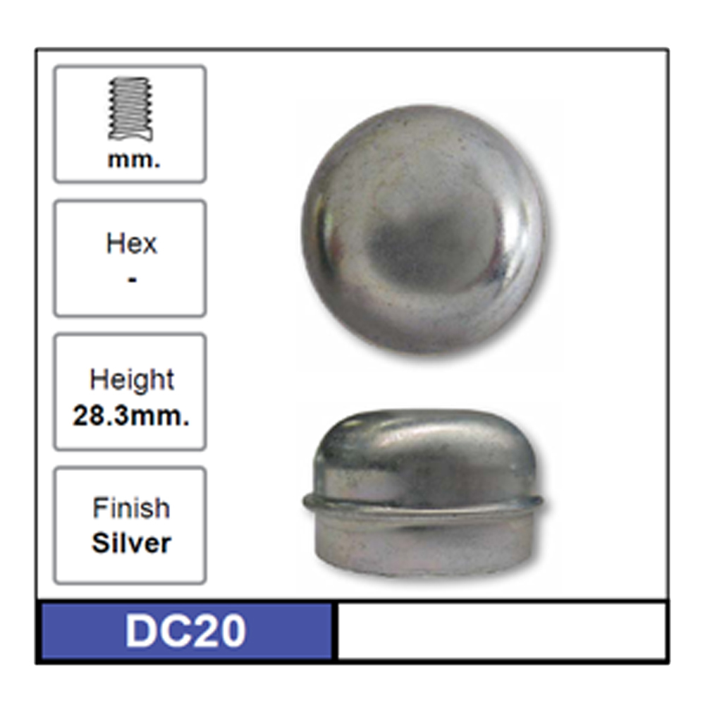 Nice DC20 Wheel Axle Spindle Dust Cover Cap 40mm Silver Height 28.3mm x1