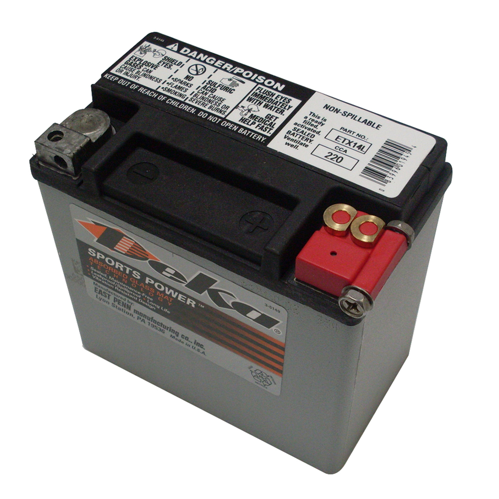 Power Sports Battery with absorbed glass mat (AGM) technology sealed 100 % maintenance free leakproof spillproof vibration resistant design. Made in the USA.