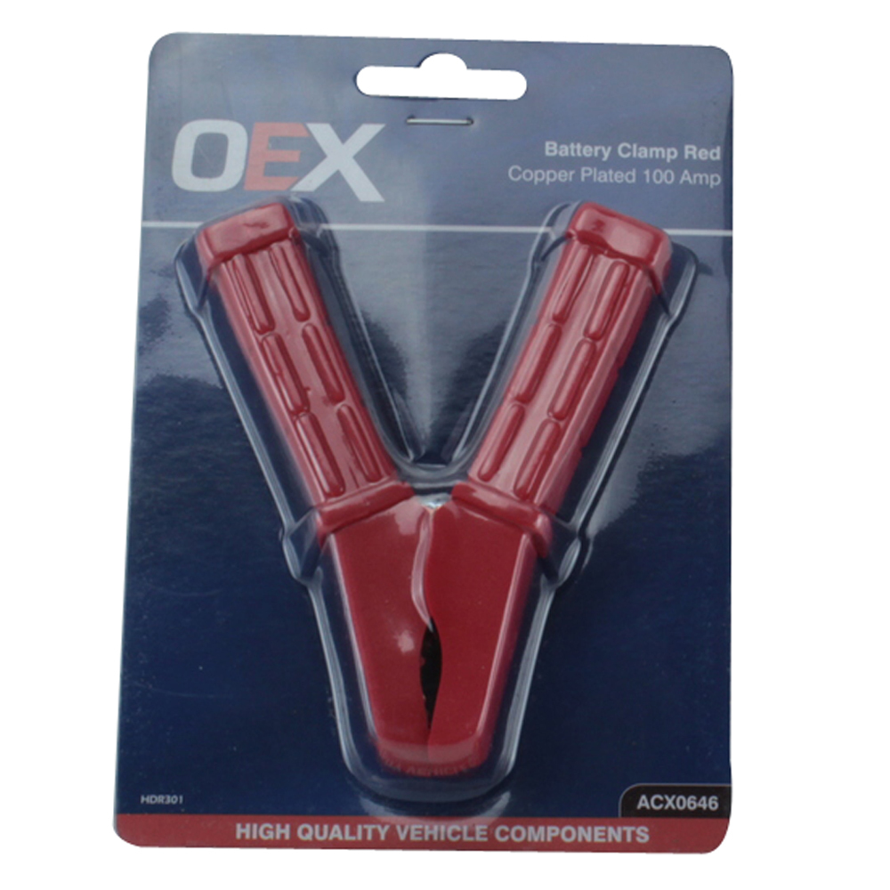 Battery Positive Clamp 100 Amp Rating Red Grip Jumper Lead Jaw Open 38mm Each
