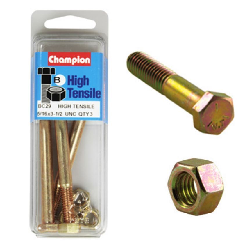 Champion Fasteners BC29 High Tensile UNC Bolts & Nuts 5/16 x 3-1/2 in. Pack of 10