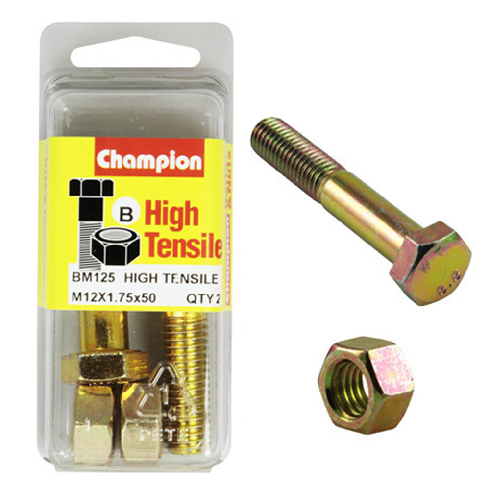 Champion BM125 Metric High Tensile Bolts & Nuts M12 x 1.75 x 50mm Pack of 2