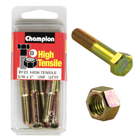 CHAMPION FASTENERS BF23 HIGH TENSILE UNF BOLTS & NUTS 5/16" x 2" PACK OF 5