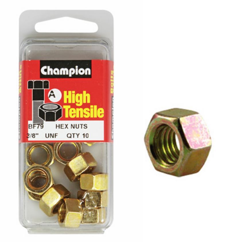 CHAMPION FASTENERS BF79 HIGH TENSILE UNF NUTS 3/8" PACK OF 10