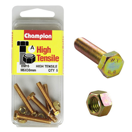 Champion Fasteners BM15 Metric High Tensile Bolts & Nuts M5 x 30mm Pack of 5