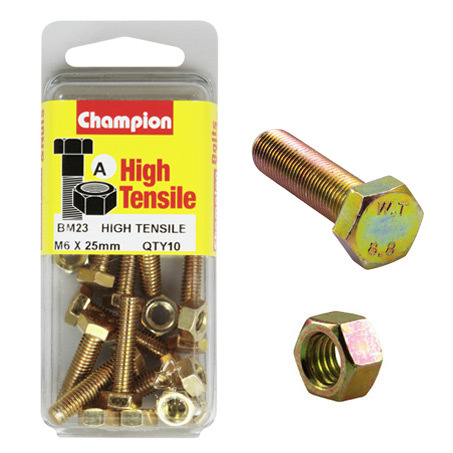 Champion Fasteners BM23 Metric High Tensile Bolts & Nuts M6 x 25mm Pack of 10