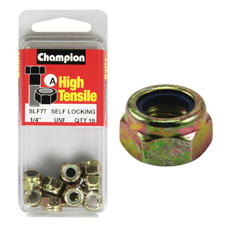 CHAMPION FASTENERS SLF77 HIGH TENSILE NYLON LOCK NUTS UNF 1/4" PACK OF 10