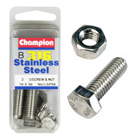 CHAMPION CSP20 316 STAINLESS STEEL PAN HEAD SCREWS & NUTS 6mm x 50mm PACK OF 2
