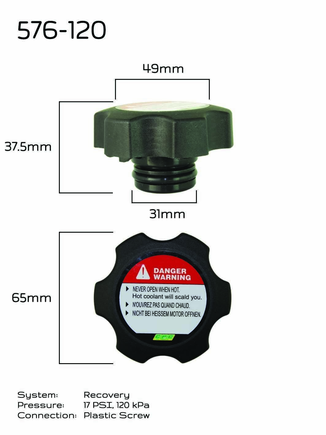 CPC 575-120 Expansion Tank Cap 17 Psi - 120 kPa Plastic Screw On Check App