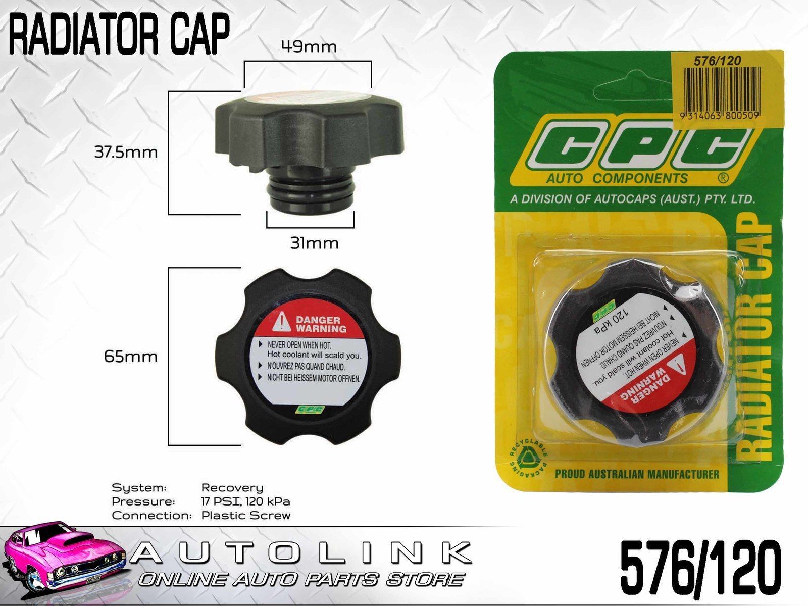 CPC RADIATOR CAP 576/120 FOR HOLDEN COMMODORE VE 3.6L V6 6.0L V8 8/2006-4/2013