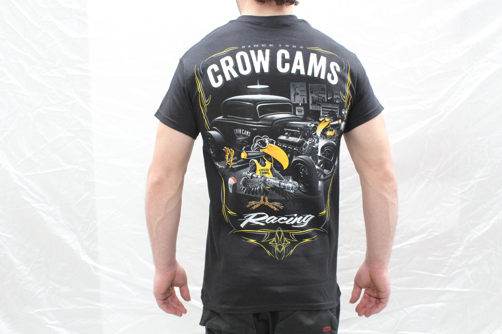 CROW CAMS BLACK T-SHIRT HOTROD GARAGE LARGE PRINT ON BACK & CROW ON FRONT LARGE