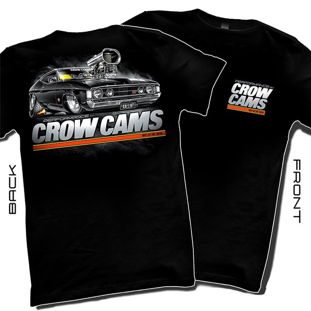 CROW CAMS BLACK T-SHIRT HOTROD GARAGE LARGE PRINT ON BACK & CROW ON FRONT LARGE