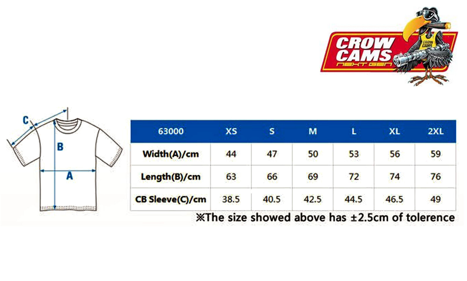 CROW CAMS BLACK T-SHIRT HOTROD GARAGE LARGE PRINT ON BACK & CROW ON FRONT LARGE