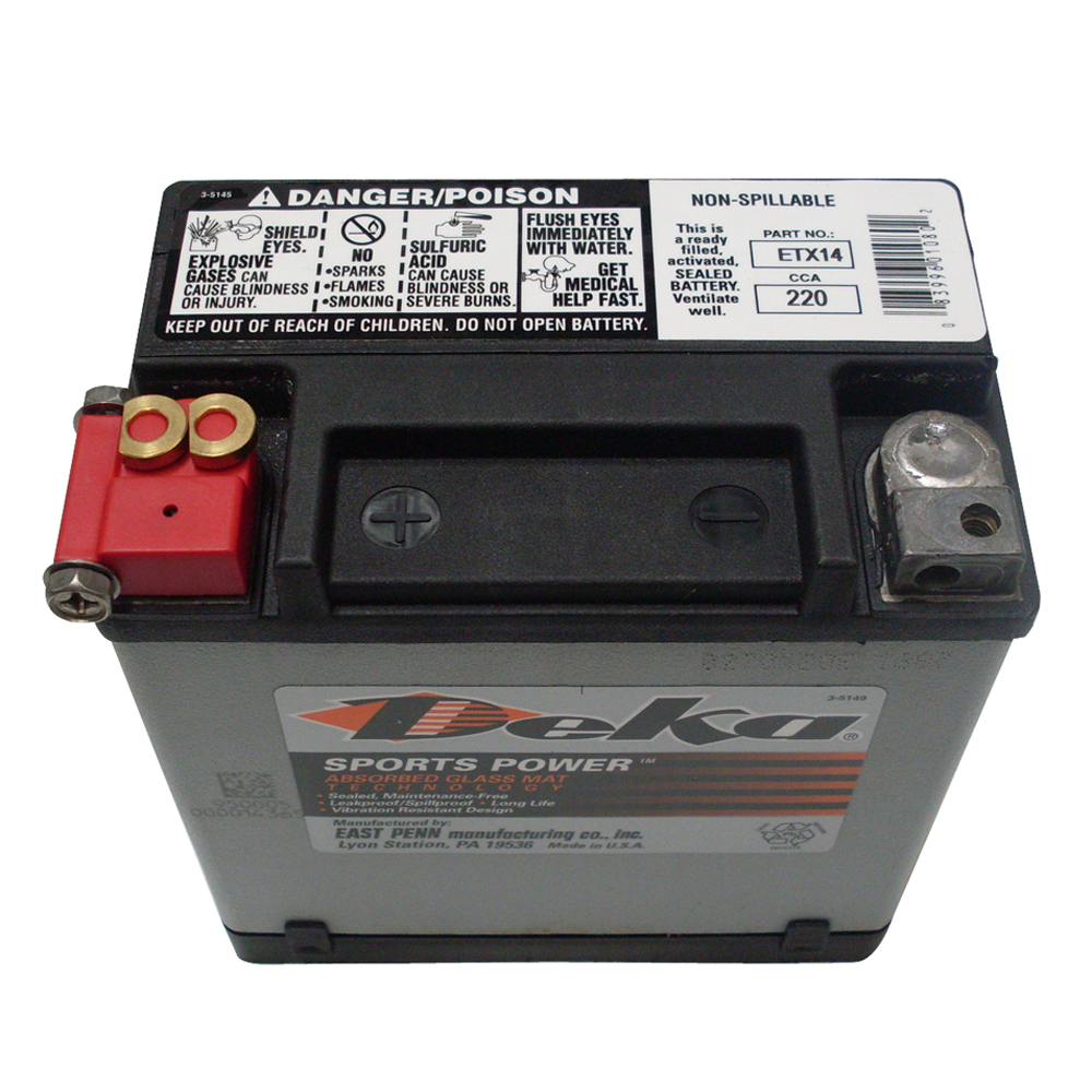 Deka premium quality, specially designed absorbed glass mat (AGM) batteries are manufactured under strict quality controls to assure superior performance and long life. The AGM design allows easy installation without the worry of acid spills and damage to equipment.