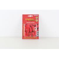 DNA 8 GAUGE RING TERMINALS GOLD PLATED RED WITH RUBBER INSULATORS (10 PACK)