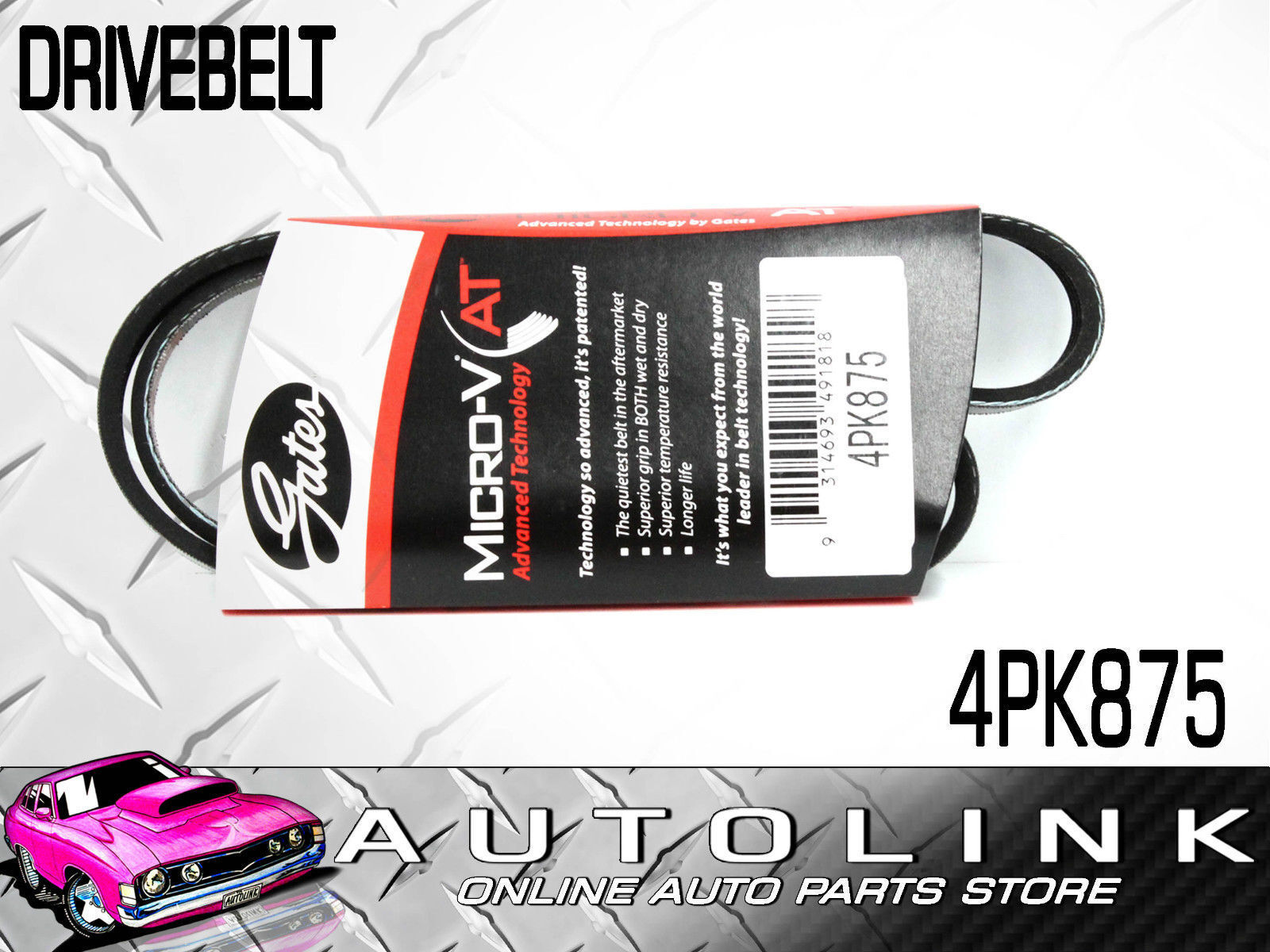 Gates 4PK875 Alt & Water Pump Drive Belt for Ford Festiva 1994-2000