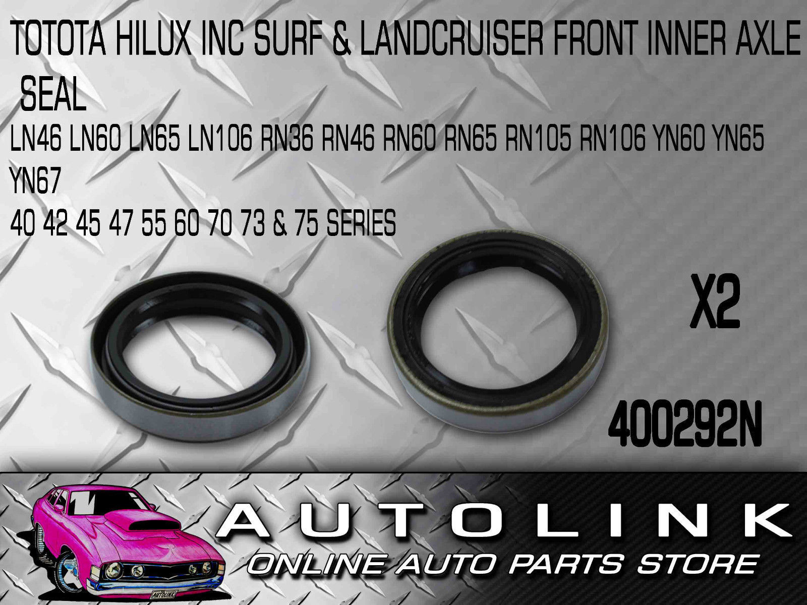 This front inner axle oil seal is to suit front wheels on Toyota Hilux Inc Surf & Landcruiser inner axle seal will suit left or right wheels.