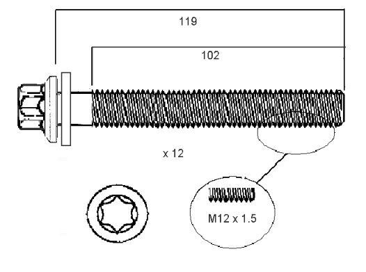 Set of 12 Headbolts M12x1.5