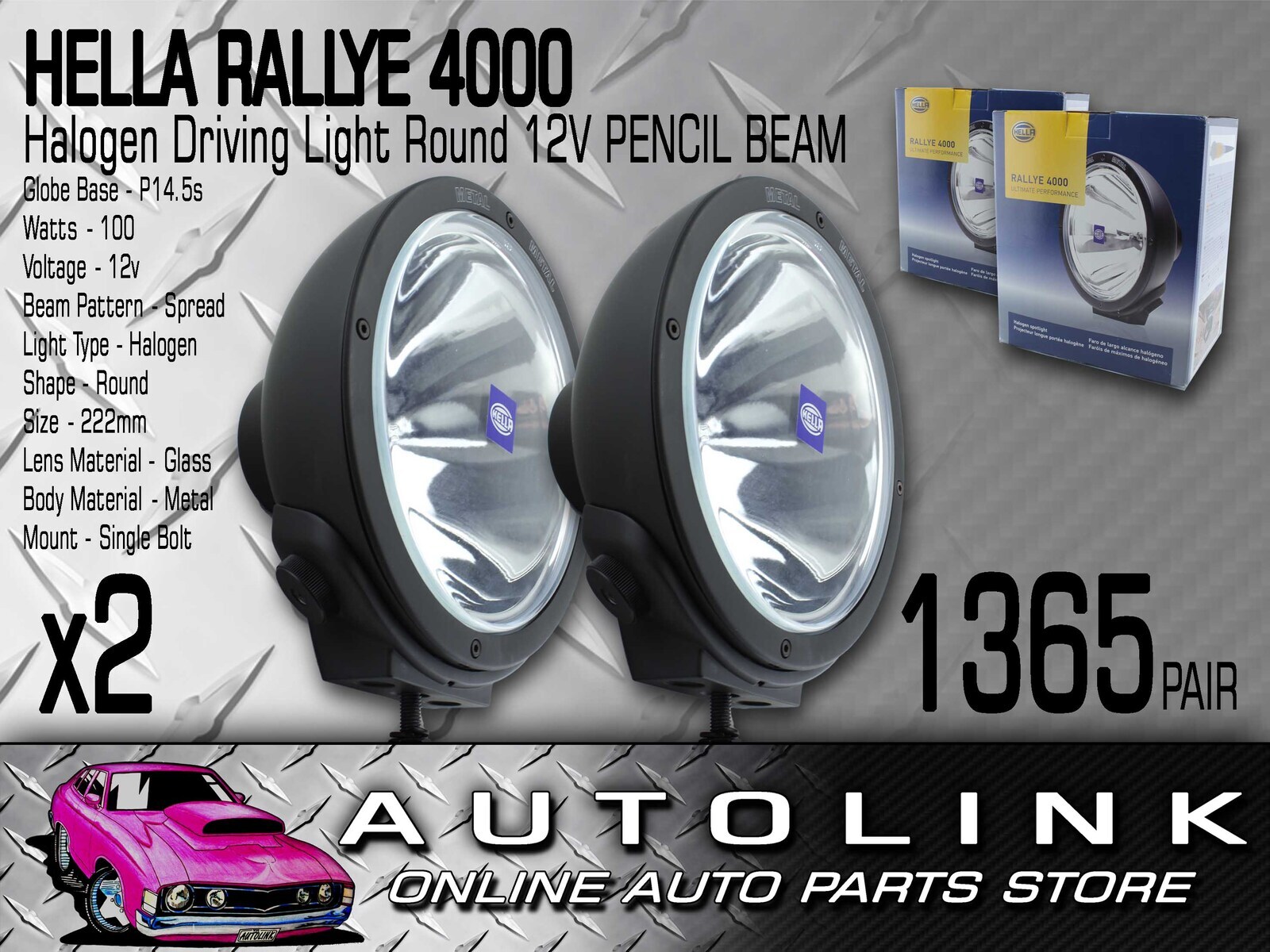 Hella Rallye 4000 100W 12V Pencil Beam Driving Lamp Round Black Housing Pair x 2