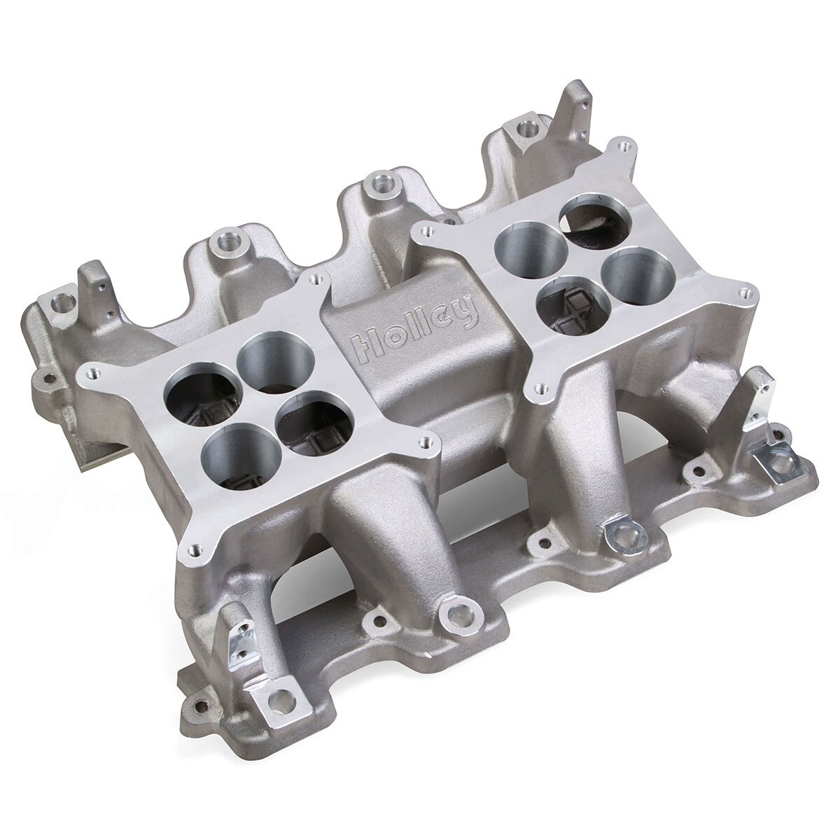 - The LS engine architecture does not utilize an intake mounted water neck or distributor so it’s perfect for two Holley carburetors and this intake.