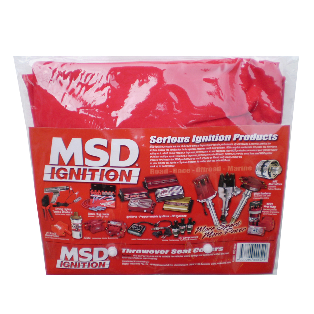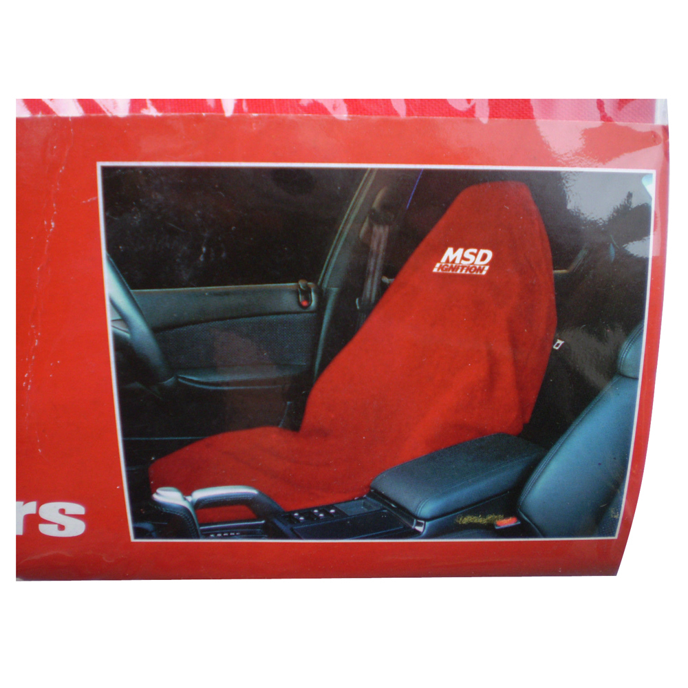 This MSD universal throw over seat covers is a great gift idea and can be used to protect your upholstery or cover up torn seats. Featuring the MSD logo on front. Will fit front bucket seats. Sold as each.
