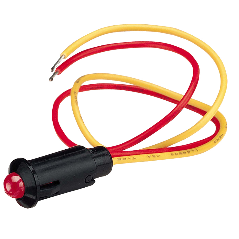 Narva 12 Volt Pilot Lamp Pre Wired with Red Led Mount Hole 8.2mm 180mm Lead