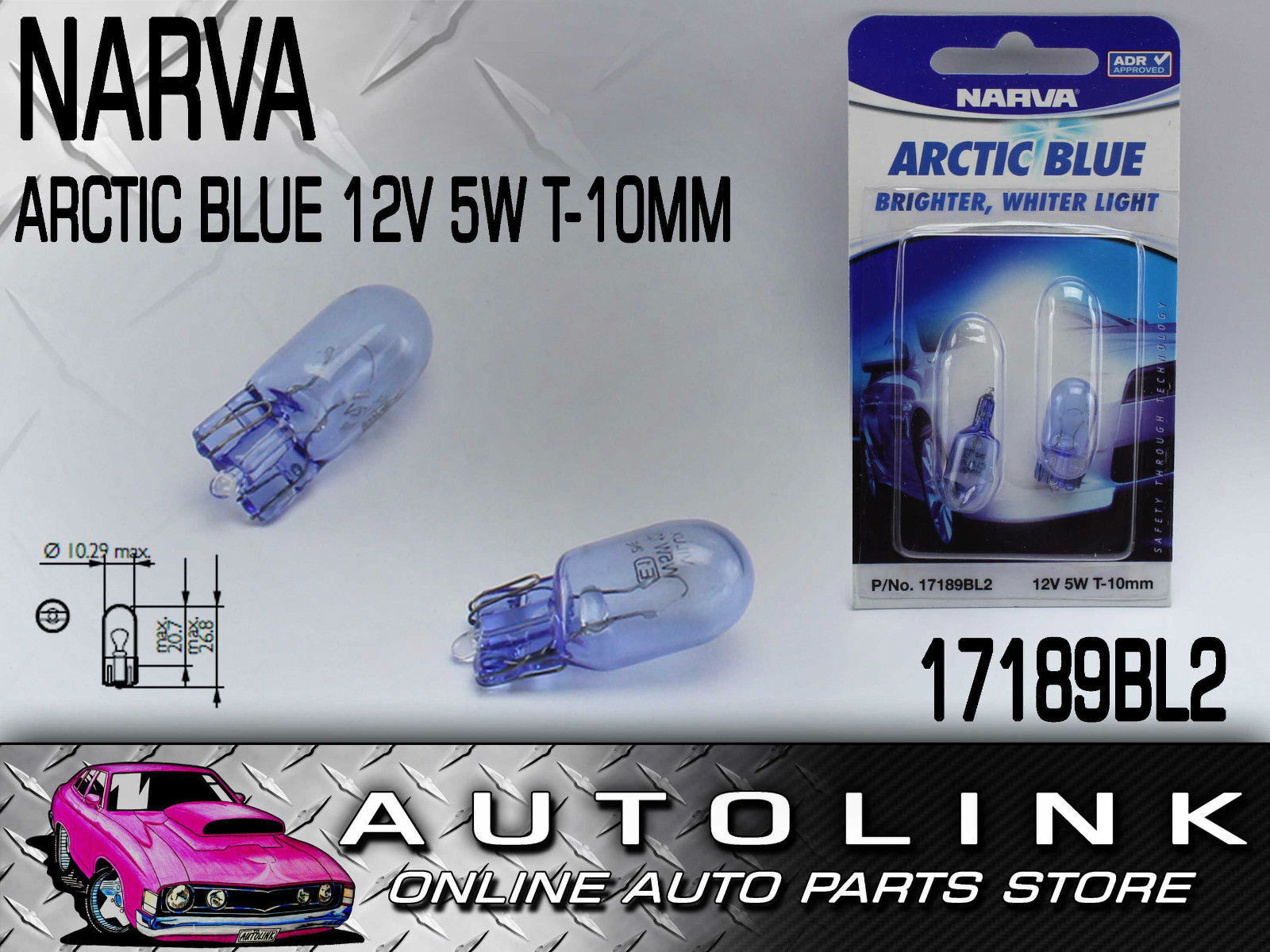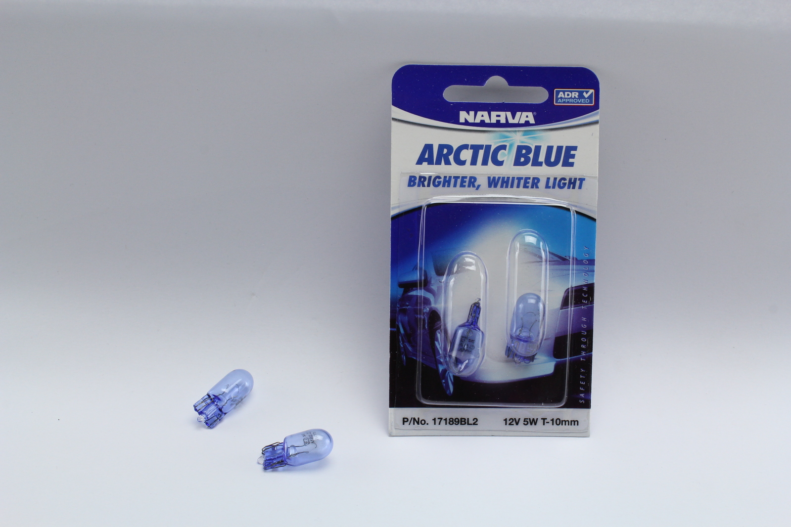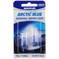 Narva 17189BL2 12V 5W Wedge Globes Arctic Blue Type T10mm White Light Pair