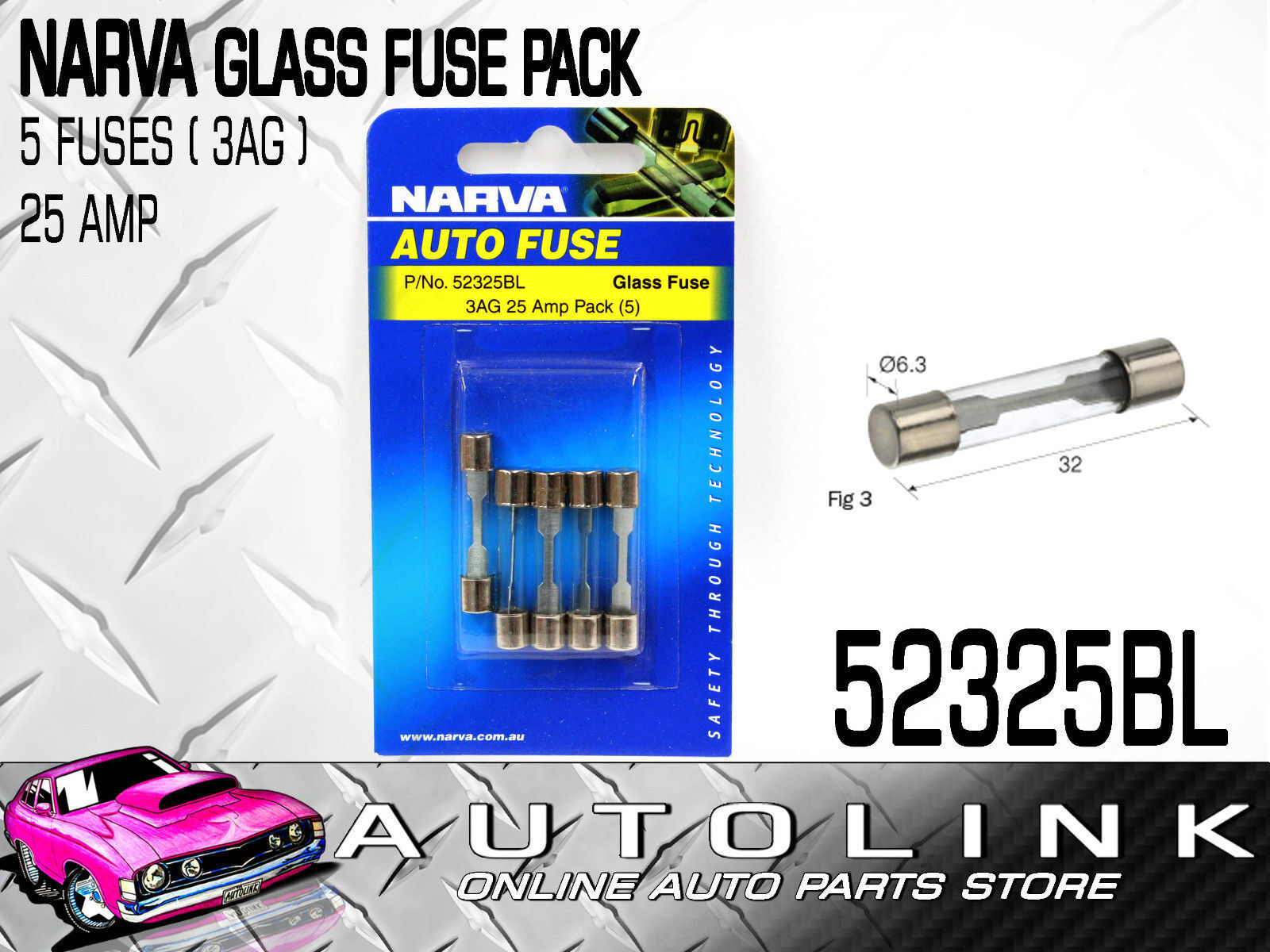NARVA 52325BL GLASS FUSE PACK 25 AMP 3AG 5 PACK