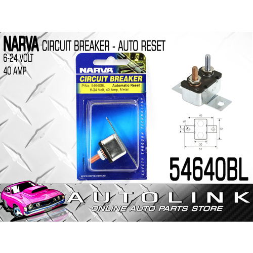 NARVA 54640BL CIRCUIT BREAKER AUTO RESET METAL TYPE 6 - 24 VOLT 40 AMP RATED