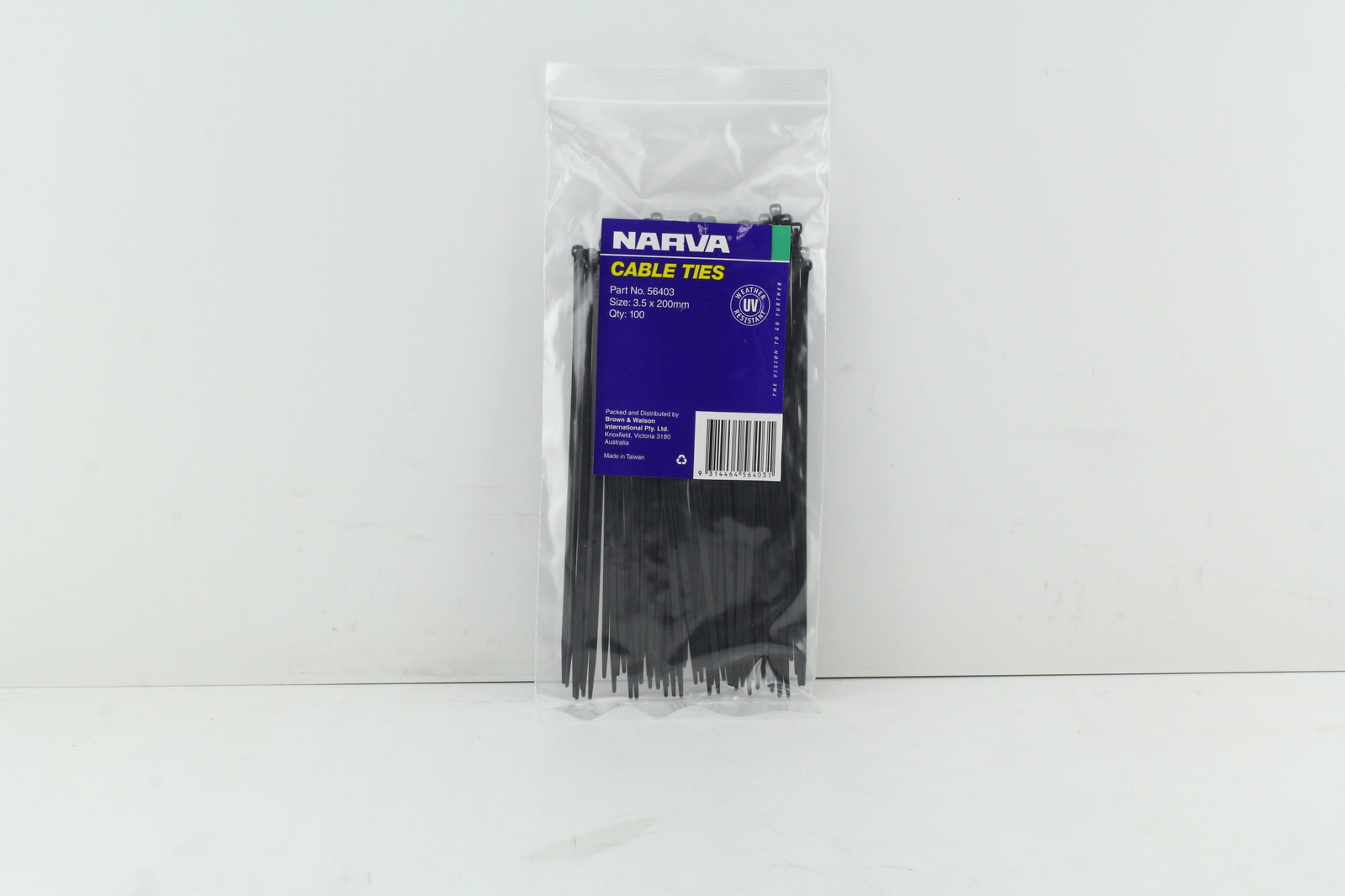 NARVA 56402 BLACK CABLE TIES 3.6mm x 140mm (5 1/2") LONG 100 PACK UV RESISTANT