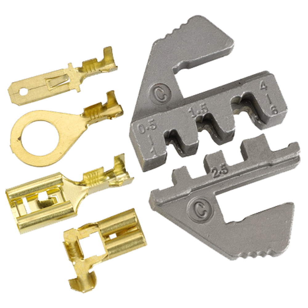 Ideal for the tradesman, auto electrician, motor mechanic or handyman this crimping kit features 4 interchangeable heads allowing one tool to service all your crimping needs from insulated and non-insulated terminals through to cable lugs.