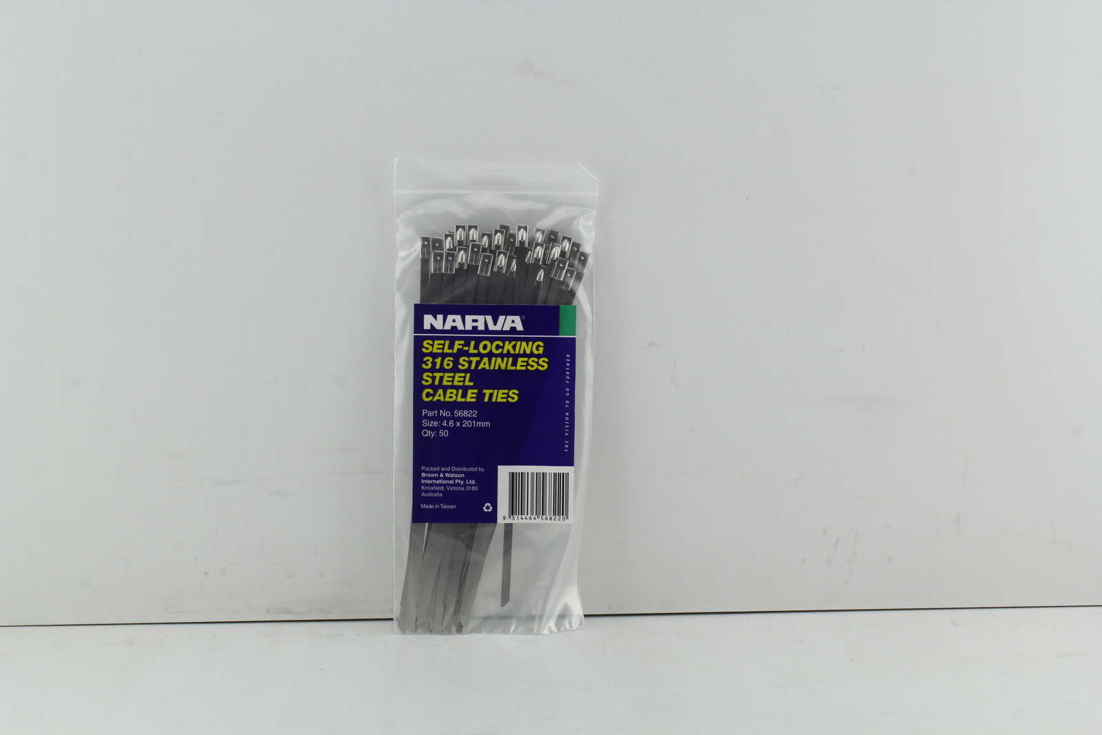 NARVA 56822 MARINE STAINLESS STEEL SELF LOCKING CABLE TIES 4.6mm x 201mm x50