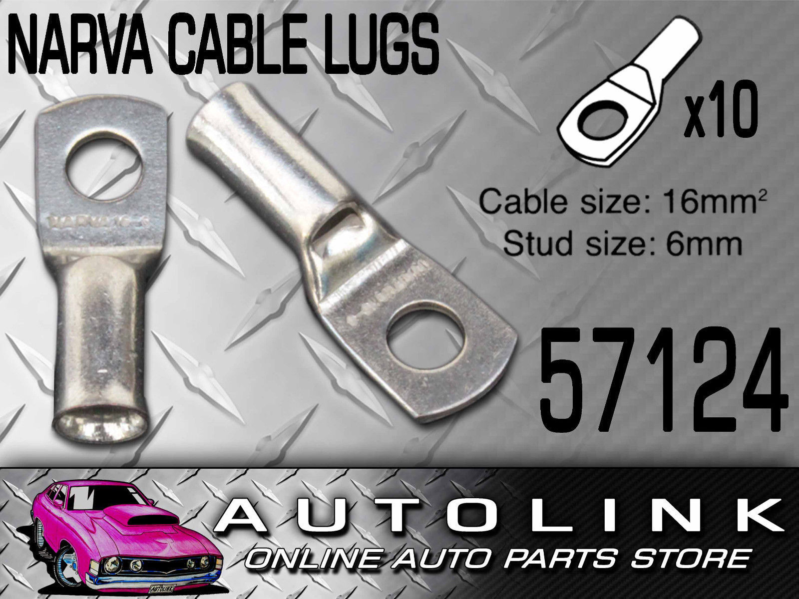 Narva 57124 Battery Cable Eyelet Lug Cable Size 16mm2 Stud Size 6mm Crimp x10