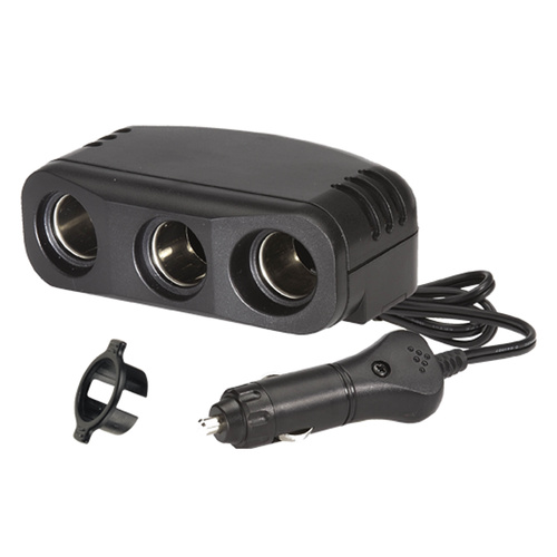 CIGARETTE LIGHTER PLUG WITH EXTENDED LEAD AND TRIPLE ACCESSORY SOCKETS