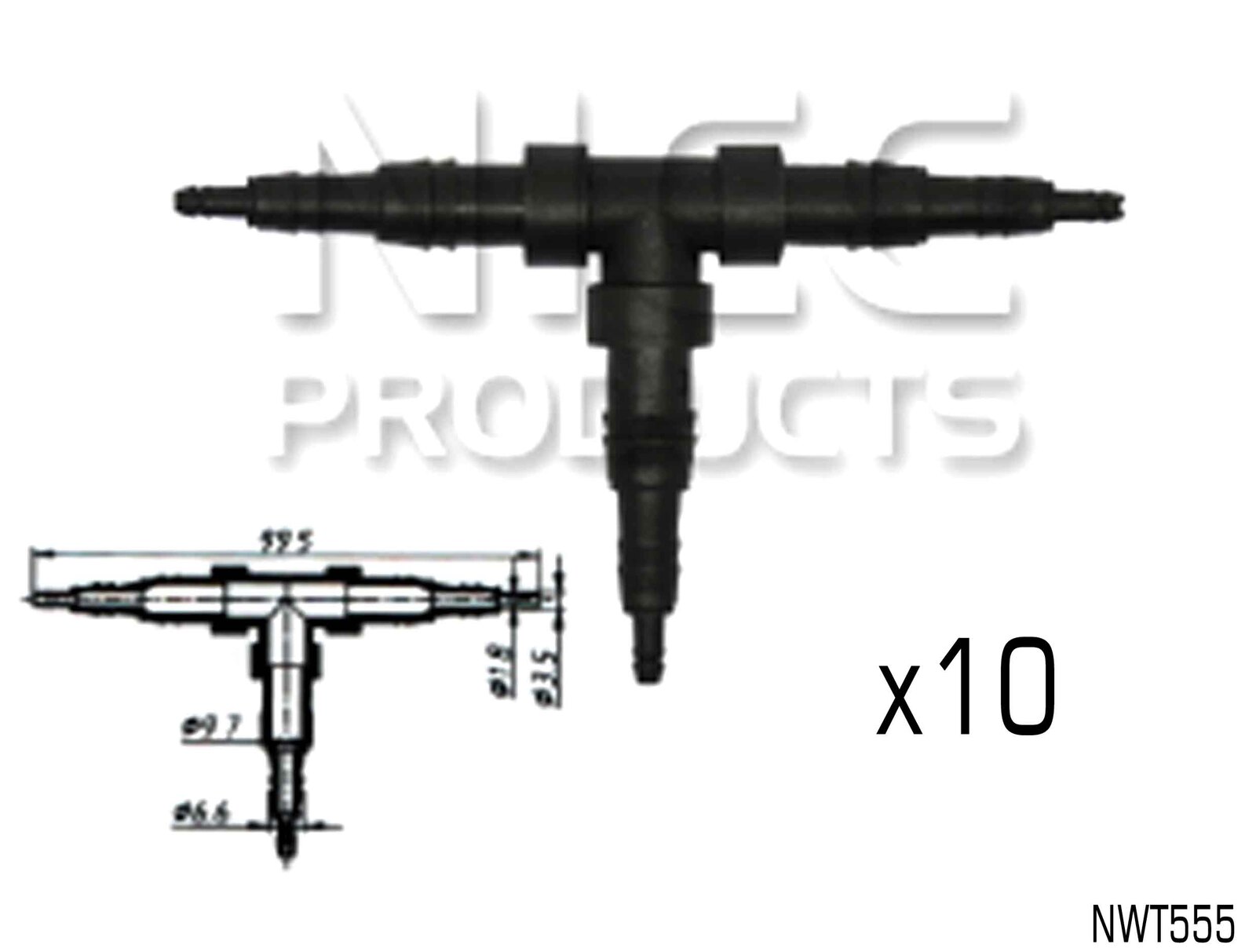 NICE NWT552 UNIVERSAL 3 WAY WASHER HOSE CONNECTOR JOINERS 5.7mm OUTLET x10